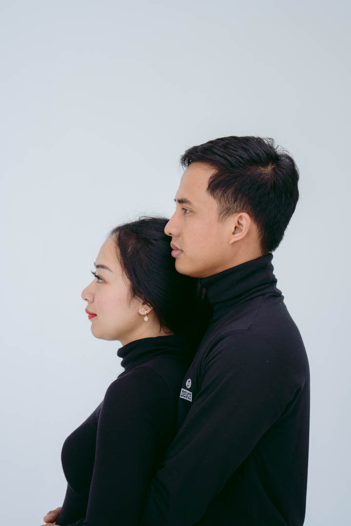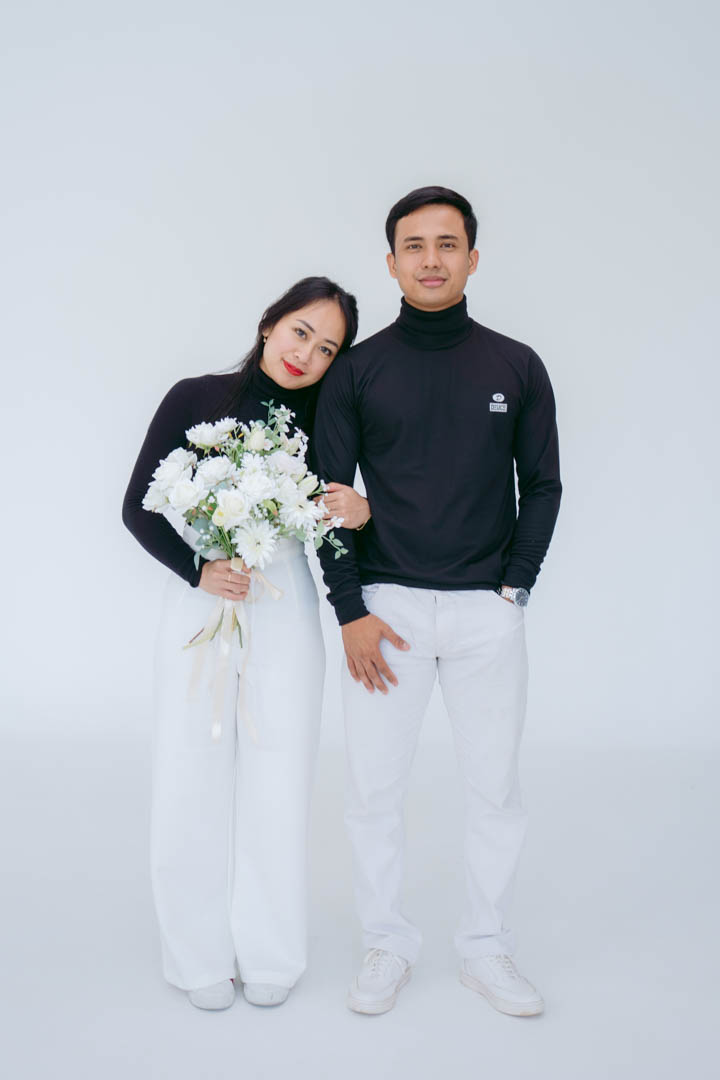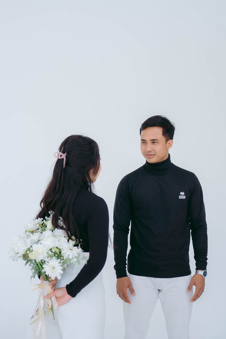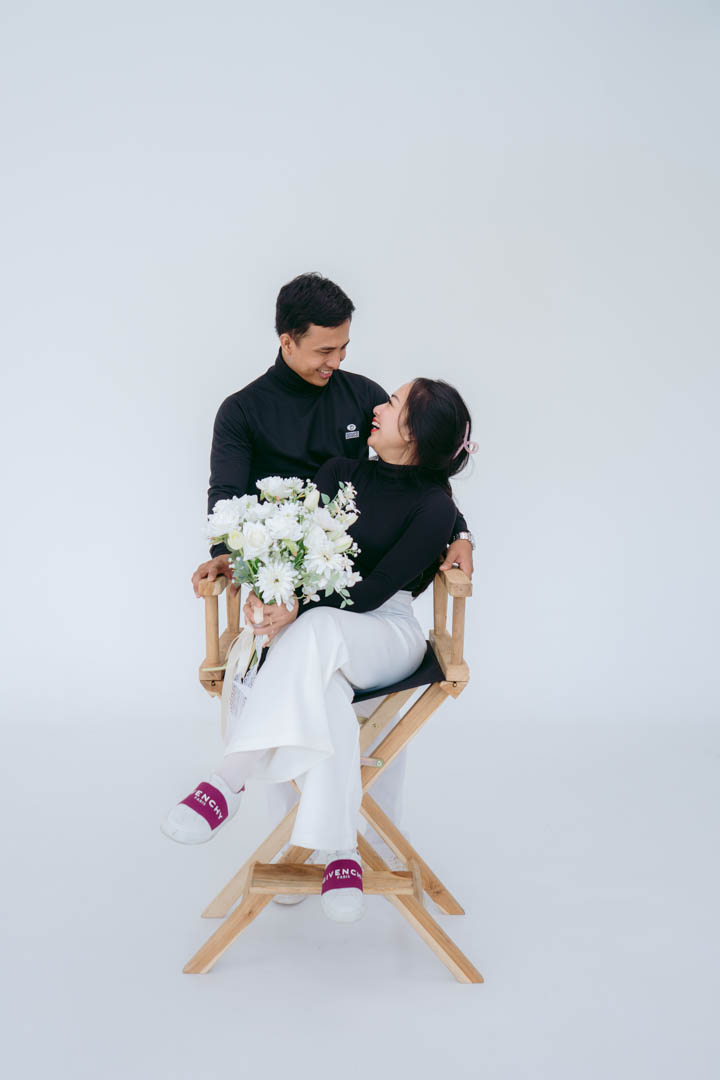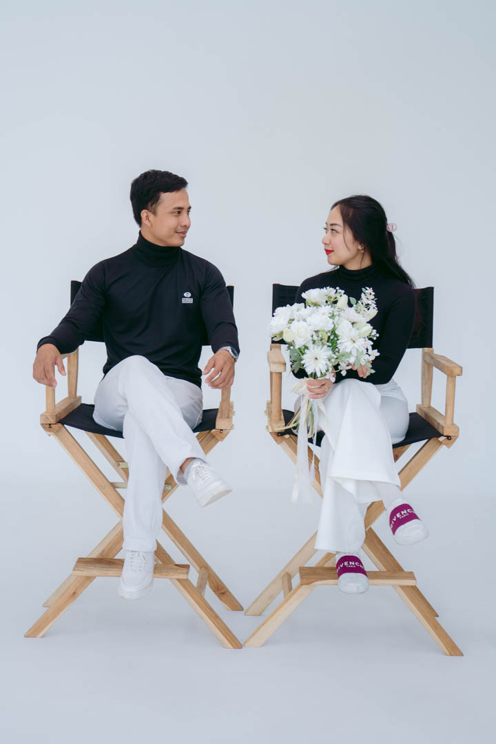 The clean white background sets the stage as they share their unforgettable encounter, hinting at a future filled with love and togetherness